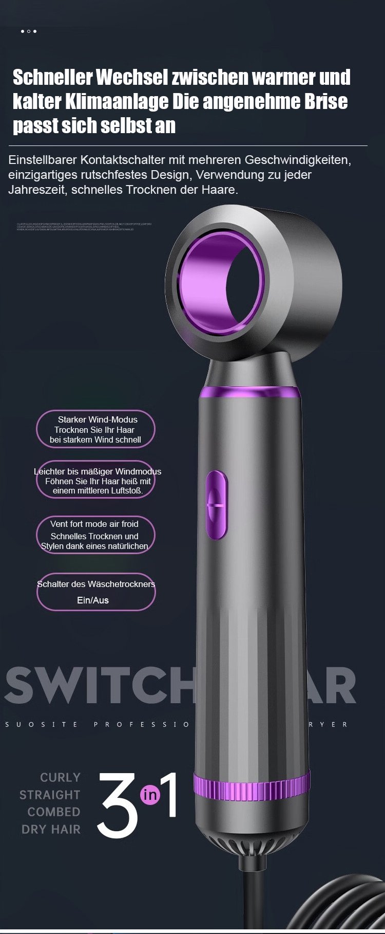 Multifunktionaler tragbarer Haartrockner